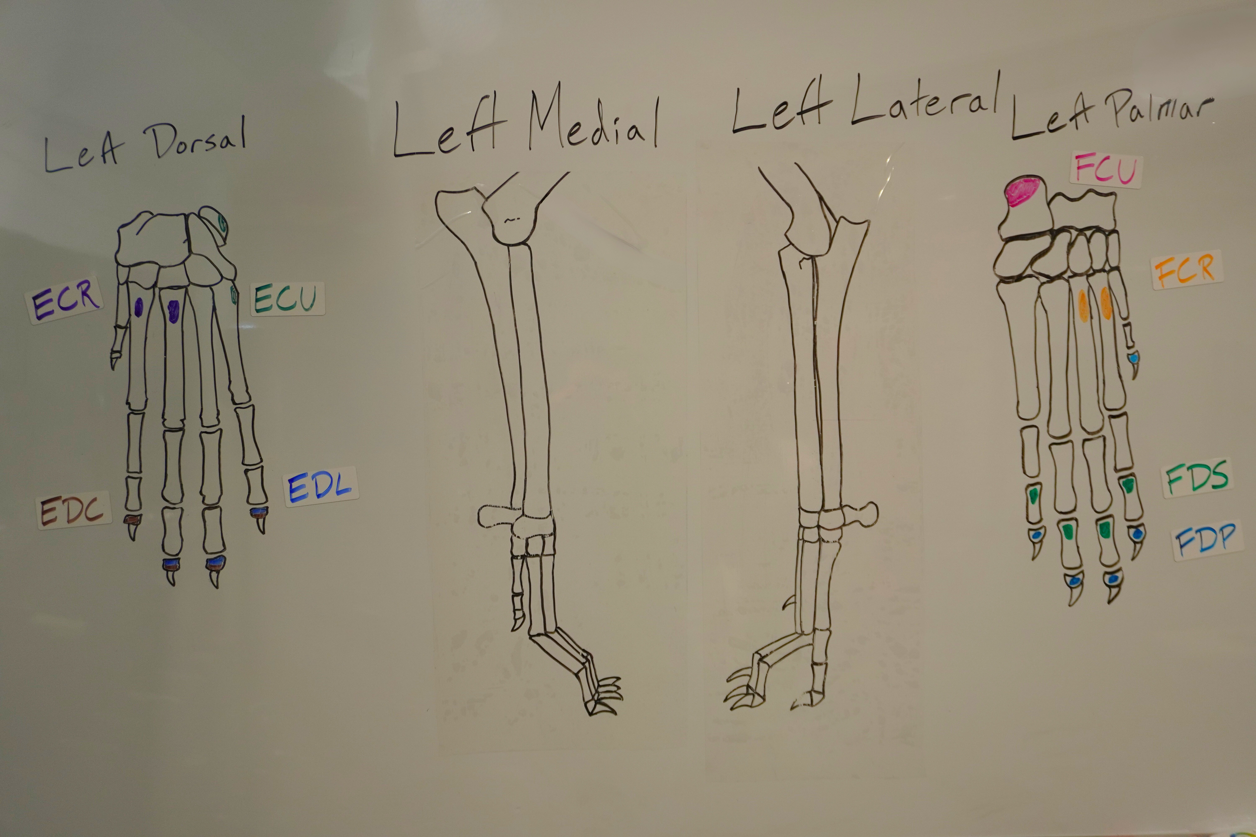 We utilize whiteboard drawings, anatomical models and demos with real dogs to help make anatomy and education clinically relevant.